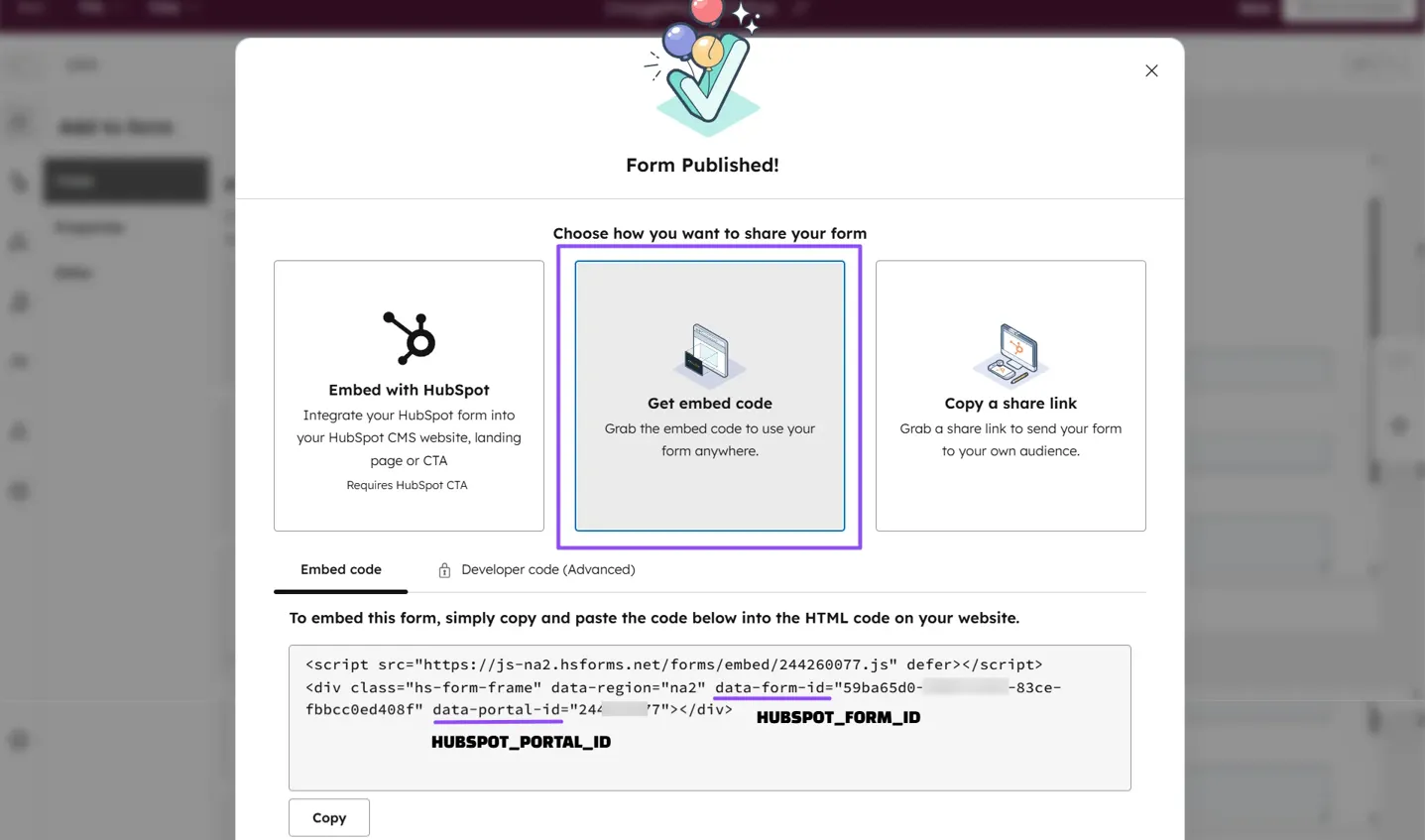 - HubSpot Tracking: Optionally, include HubSpot's tracking script on your page to enrich lead data with session information and improve marketing attribution.