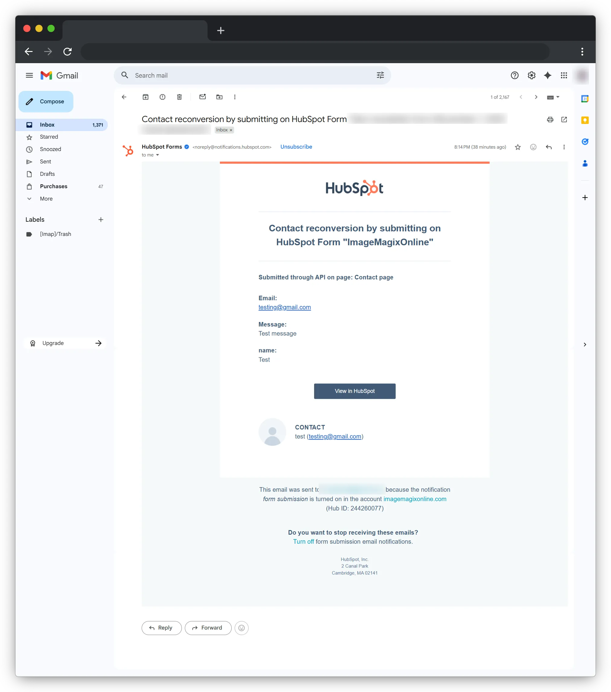 3. Finally, confirm that the new lead appears in your HubSpot account's contacts or form submissions list.